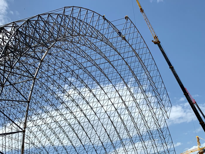 (2)网架加工前应对现场尺寸进行复测,确认无误后方可进行加工、安装;网架制作、运输、安装应遵守《空间网格结构技术规程》JGJ7-2010、《钢网架嘉兴螺栓球节点》JG/T 10-2009、《钢网架嘉兴螺栓球节点用高强度螺栓》 GB/T 16939-2016、《嘉兴钢结构嘉兴工程嘉兴施工规范》 GB50755-2012、《嘉兴钢结构嘉兴工程施工质量验收标准》 GB50205-2020。